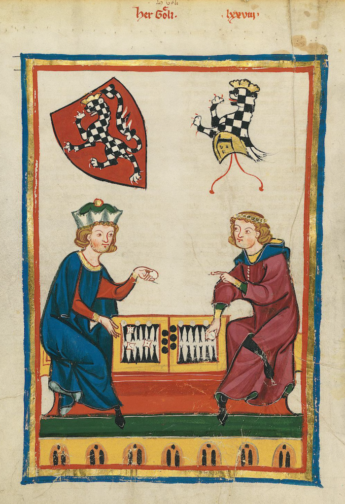 Несколько фигур в средневековых шахматах представляли мужчин-воинов. Примечательно: фигура по-английски, называемая рыцарем, в Голландии воспринимается как конь, в Германии — как конь, или прыгун, а во Франции — как кавалерист. Мужественность, воинственность также является важной характеристикой прежнего рыцарского романа, зародившегося во Франции 11 веке. Шахматы и нарды — это занятие крутого хулигана. Как и в «Песне Ролана», около 1100 года. Молодые мужественные рыцари играли в нарды (строка 111). Старшие и, следовательно, более мудрые рыцари играли в eschecs: в шахматы. Преемники неизвестного писателя повторили метафору рыцарей, играющих в нарды и шахматы, но без отождествления шахмат с мудростью.