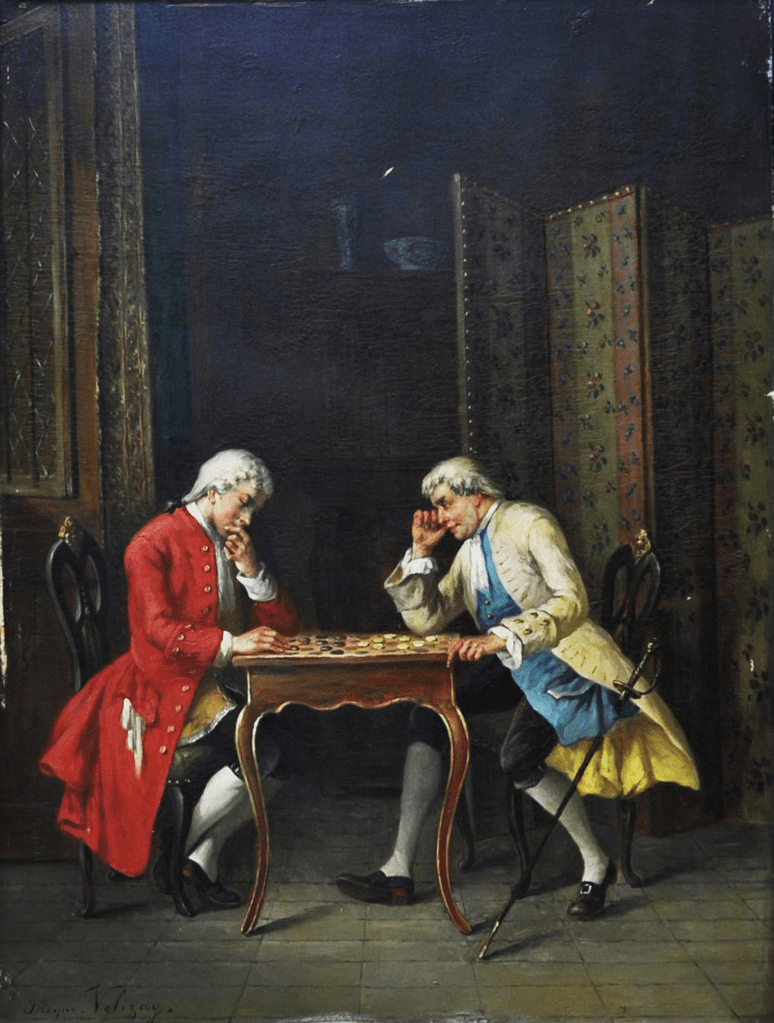 Этим я не утверждаю, что, помимо имени новой королевы, шахматистам принадлежит и расширение дальности действия новой королевы применительно к шашистам. Однако вот итог моего исследования настольных игр в средневековой Европе: шашки были основной игрой, шахматы — второстепенной. После Средневековья во многих испанских книгах по шашкам отмечается, что шашки серьезно изучались целым рядом испанцев, что было возможно только при наличии широкой питательной среды. Достаточно оснований для такого вывода: мне представляется исторически безответственным отбрасывать такое утверждение без полного рассмотрения.
