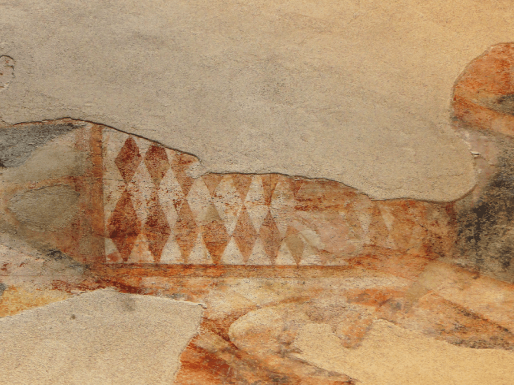 In 1986 begon de provincie een restauratie. Archeologen troffen onder de ruïnes een niet al te grote ruimte ‒5,60 x 6,50 met een hoogte van 3,20 meter‒ die gezien de fresco’s ‒ze beelden spelende figuren af‒ als speelkamer dienst had gedaan. Voor de fresco’s is mogelijk de schilder Graziolo, bijgenaamd ‘De meester van Arco’, verantwoordelijk. Ze worden gedateerd op de periode 1360-1380. Waarschijnlijk waren er achttien fresco’s, zes ervan zijn vrijwel uitgewist [D’Andreamatteo 2018]. Afbeeldingen met schakers, met triktrakspelers en met dammers zijn bijna onbeschadigd; het molenfresco heeft zwaar te lijden gehad.